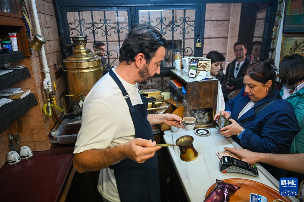 土耳其咖啡歷史悠久,于2013年被列入聯(lián)合國教科文組織人類非物質(zhì)文化遺產(chǎn)名錄。這家街邊咖啡店所延續(xù)的正是這一份傳統(tǒng)。