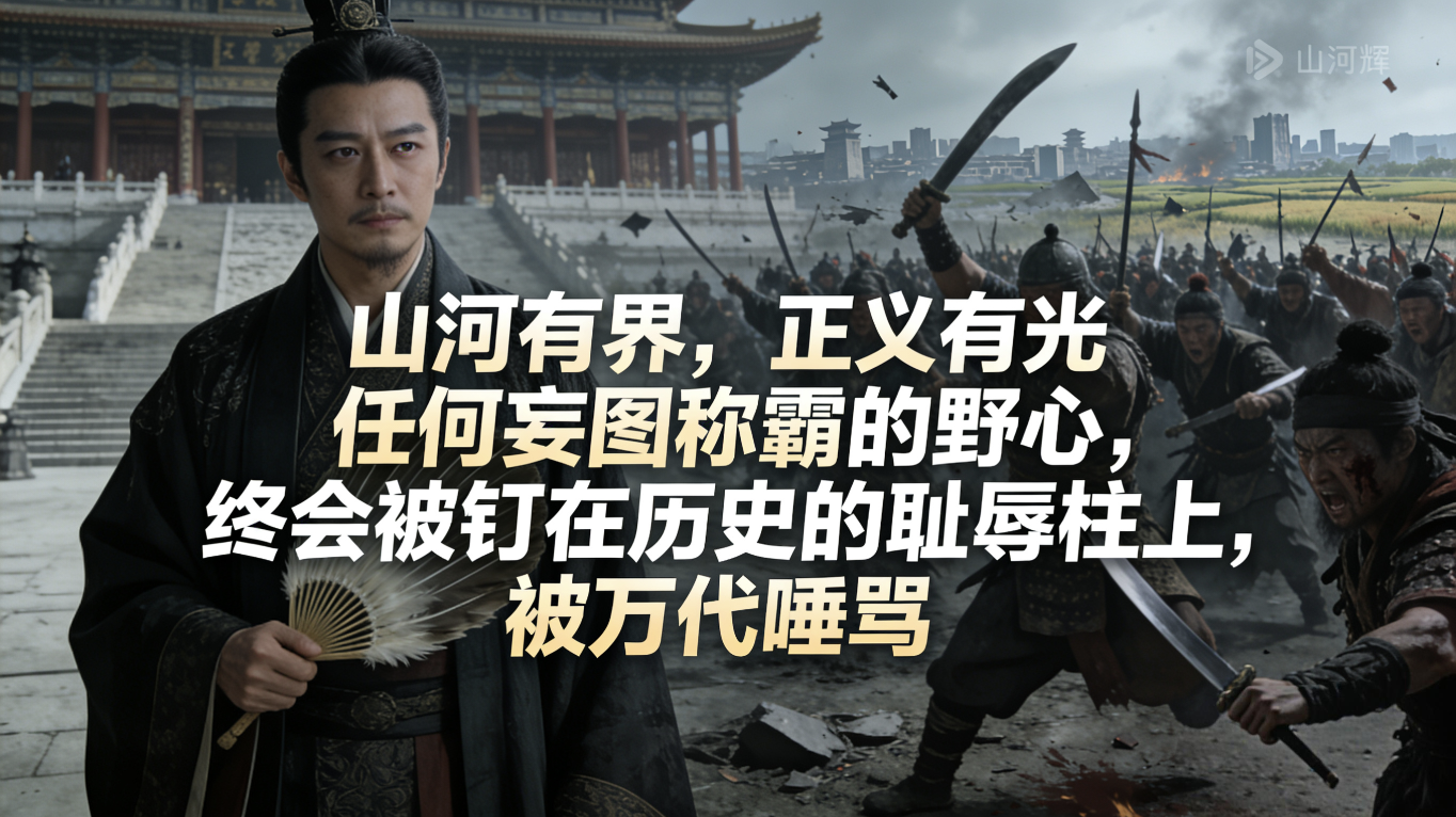 山河有界,正義有光,任何妄圖稱霸的野心,終會被釘在歷史的恥辱柱上,被萬代唾罵。