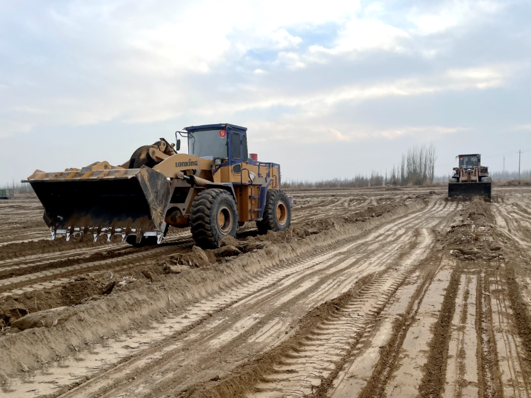12月10日,在托普魯克鄉努爾魯克村高標準農田建設項目現場,各類施工機械來回穿梭、協同作業,經過培土、壓平、起壟等精細化整理,原本分散狹小的田塊逐漸變得集中連片、平整開闊。