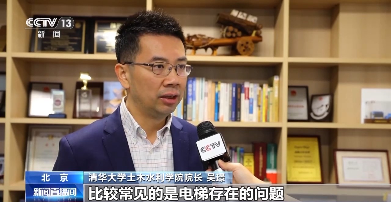 清華大學土木水利學院院長 吳璟:比較常見的是電梯存在的問題,或者是整個房屋的結構,都已經存在了一些問題。