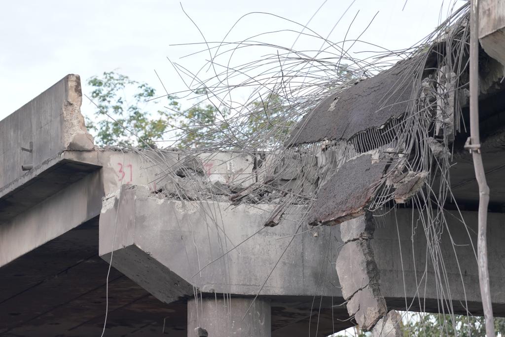 這是12月13日拍攝的柬埔寨菩薩省邊境地區遭到泰軍轟炸的橋梁。新華社/柬新社