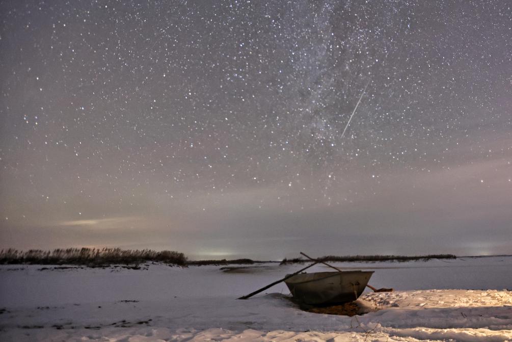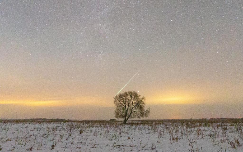 12月13日在黑龍江省同江市拍攝的雙子座流星雨。新華社發(劉萬平攝)