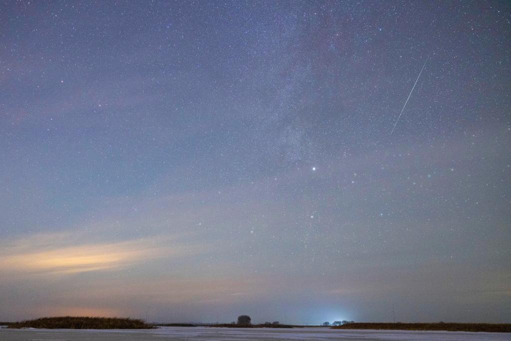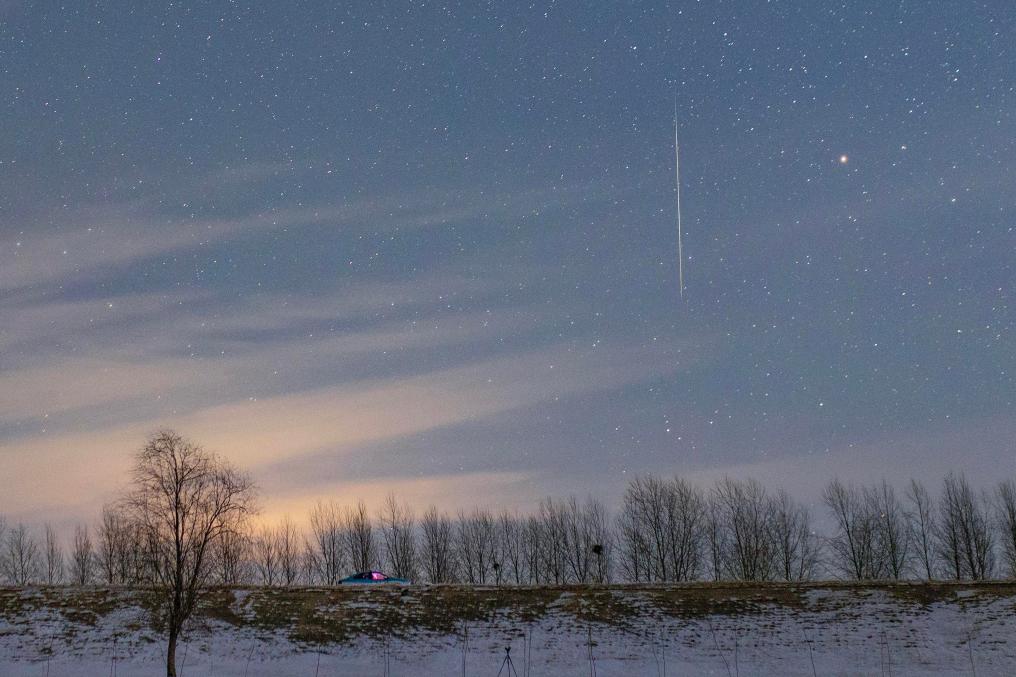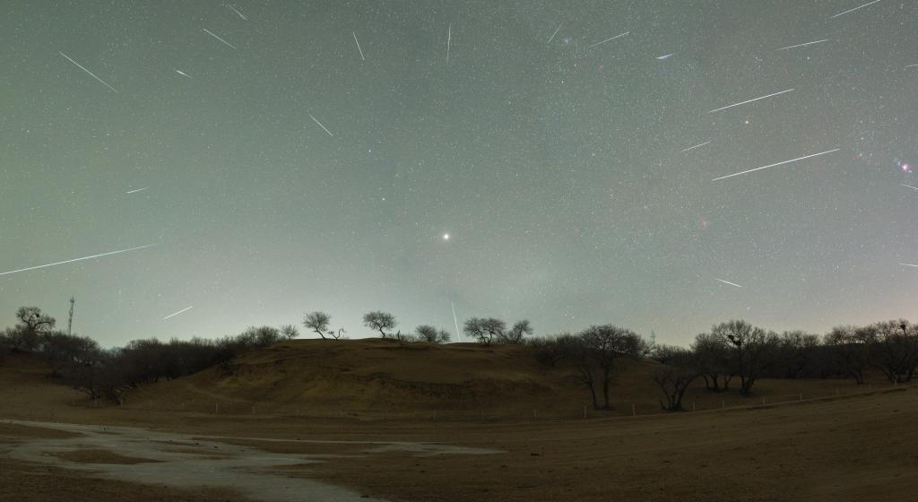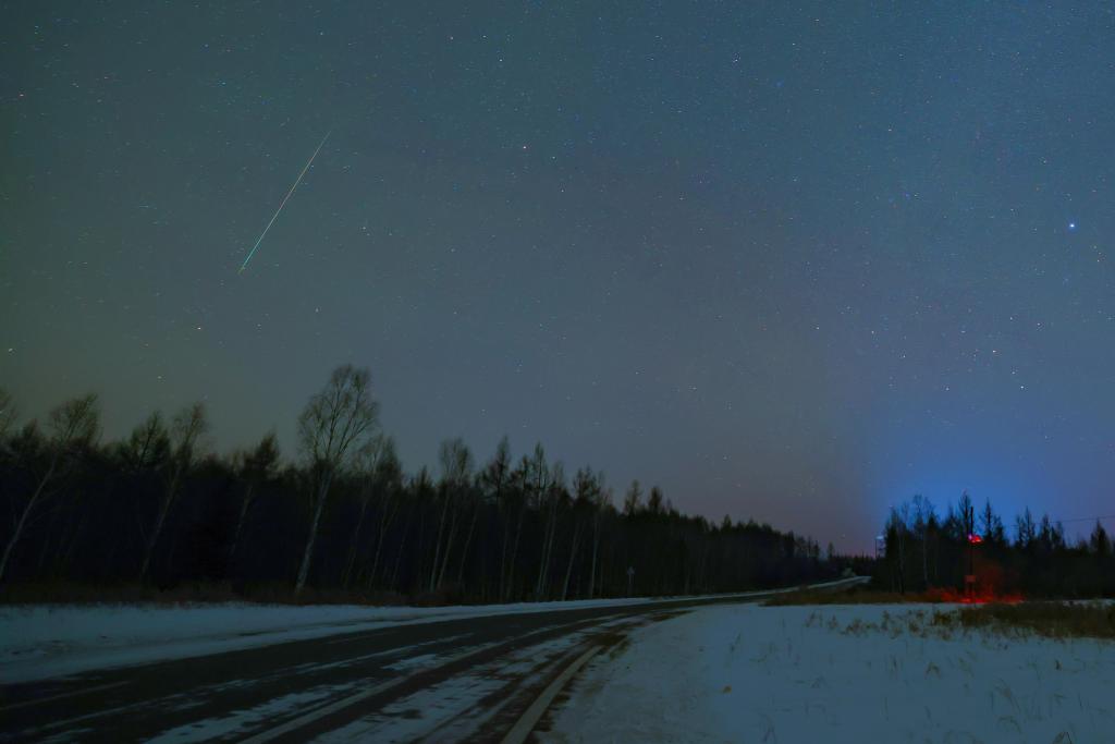 12月14日凌晨在黑龍江省伊春市伊美區拍攝的雙子座流星雨。新華社發(李佳星攝)