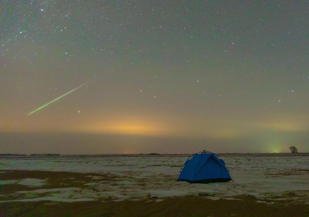 12月14日凌晨在黑龍江省富錦市拍攝的雙子座流星雨。新華社發(曲玉寶攝)