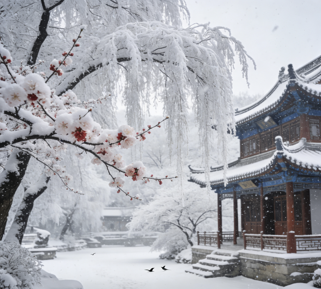 驚落枝頭的雪,簌簌,如梵音輕唱