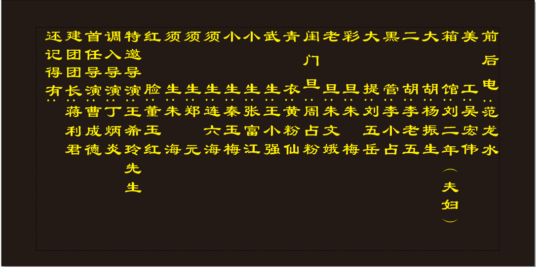 “閆團長,咱團散伙幾真些年了,你咱還恁割勁籌辦這次‘紀念建團42周年’座談會呢?”司胡劉紅勛關切地問。閆永申的回答是:“一是經我手保住‘梨園豫劇團’這塊金匾,丟不了;二是把能想起行當名字的演職員,都鐫刻在上邊,忘不了;三是,希望戲友們牢記咱們是為唱戲才走到一起的,戲緣情志友義不棄不離永遠存在;四是,以實際行動傳承和弘揚梨園豫劇人的“藝德雙馨”之良好戲風!