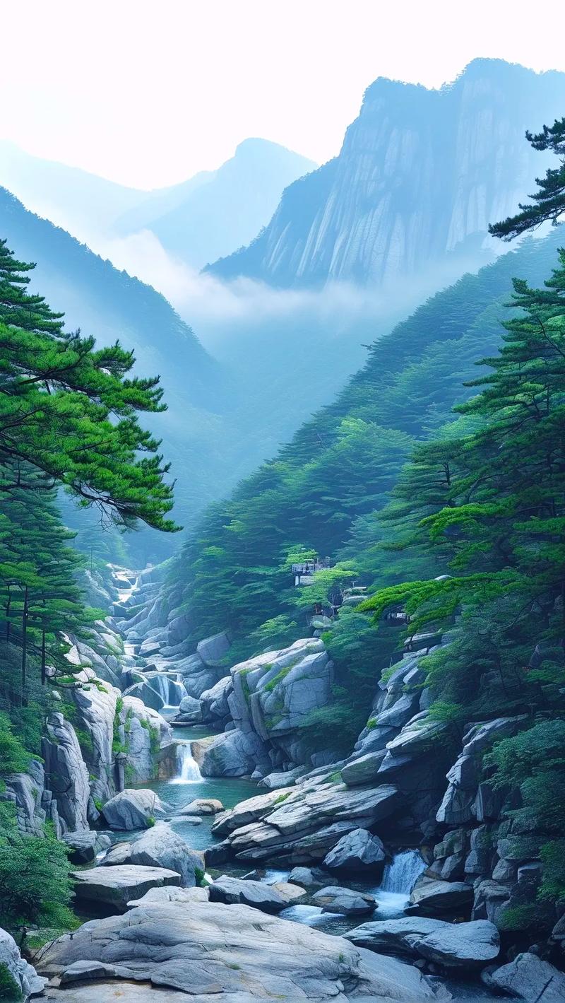 我們沿著三疊泉往上爬,石階濕滑,每一步都像踩在歷史的褶皺里。李白寫過“飛流直下三千尺”的秀峰瀑布,徐霞客贊過“磅礴千里”的黃龍潭,可三疊泉偏要“藏”得深——要爬過“五老峰”的陰影,趟過“水簾洞”的溪流,才能聽見它隱隱的雷聲。