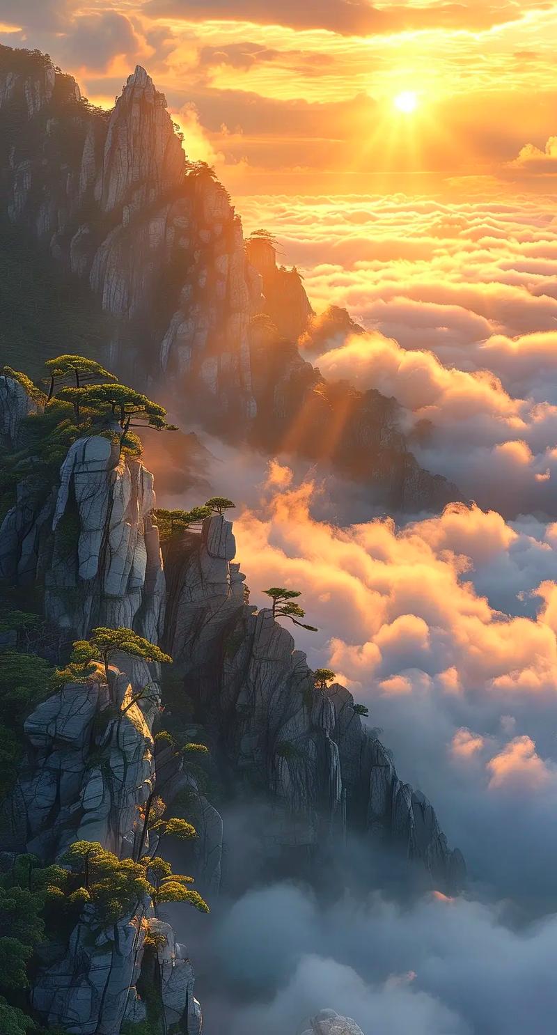 最奇的是含鄱口的“霧中日出”。凌晨四點,我們裹著租來的棉大衣等霧散,云霧卻越聚越濃,把鄱陽湖的方向都遮成了白茫茫。正當失望時,東邊的云忽然裂開道縫,金光像熔化的鐵水潑進來,云霧被染成橘紅、絳紫,連身邊的松樹都鍍了金邊。“廬山的霧,專跟人玩‘猶抱琵琶半遮面’,”同行的攝影師老周按下快門,“你看這光影,像不像給群山披了件鑲金邊的紗袍?”