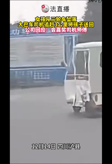 女孩從三輪車墜落,大巴車司機(jī)追趕3公里將孩子送回