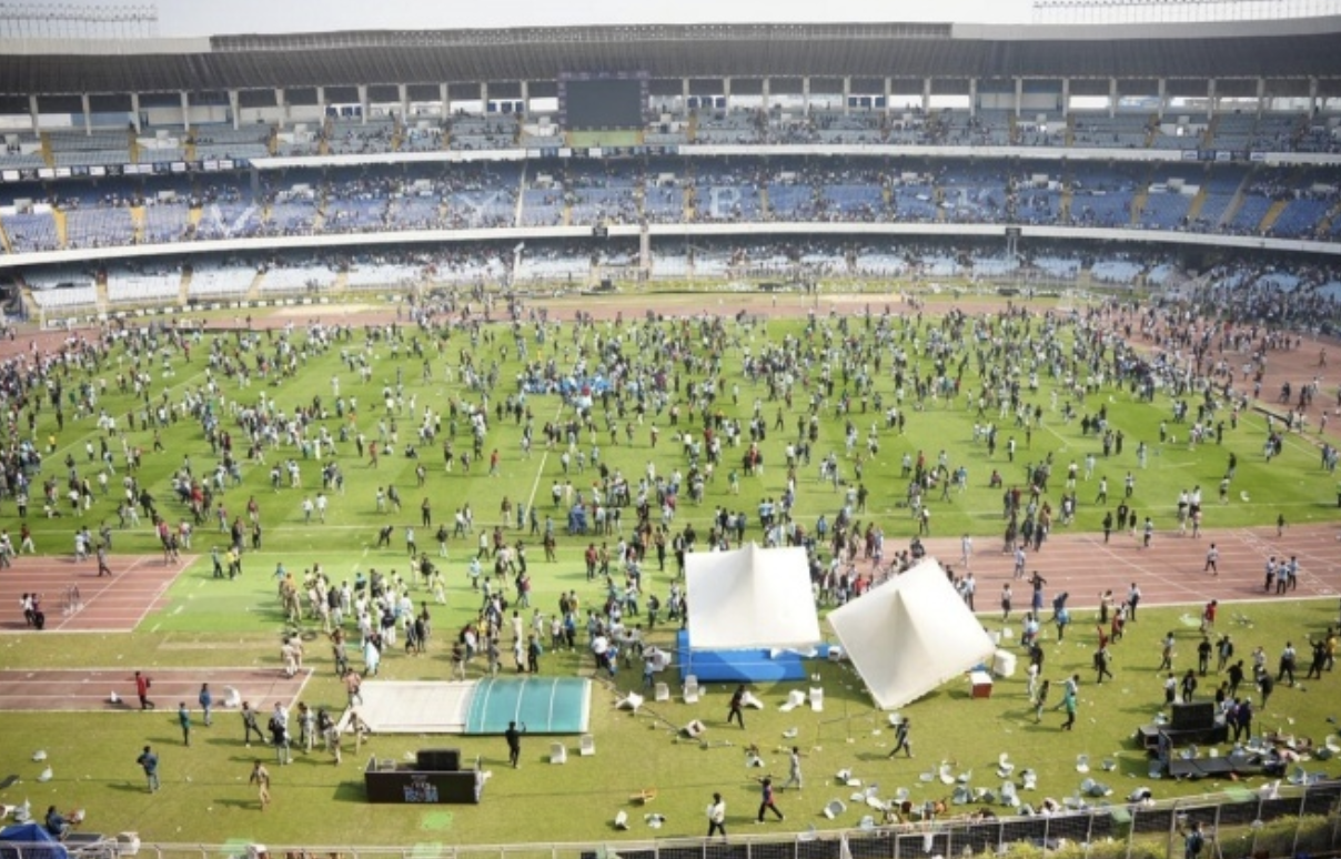 昨日下午,梅西現身印度的鹽湖體育場,但他身邊圍了太多的官員及官員家屬,導致現場的8萬名球迷根本無法看到梅西。只待了10分鐘后,梅西就提前離開,薩塔德魯-杜塔全程陪同。隨后,球迷暴怒,沖下看臺破壞球場的設施?,F場爆發了巨大的騷亂。