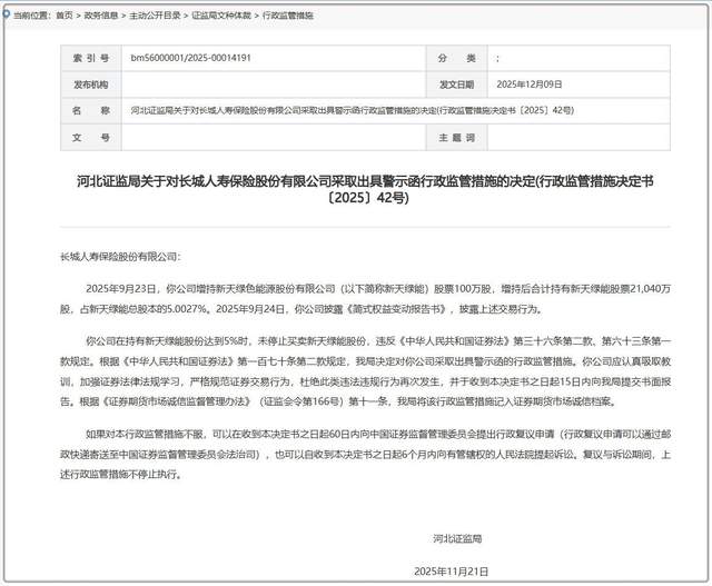 就這么一個(gè)動(dòng)作,河北證監(jiān)局直接給了一張警示函。