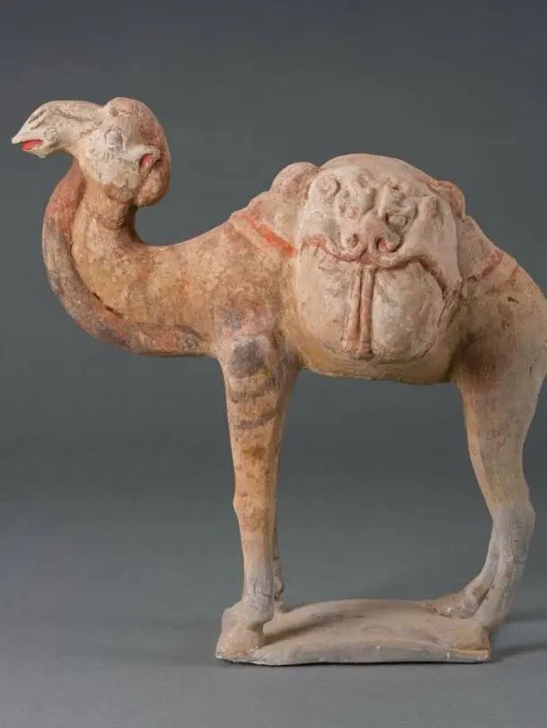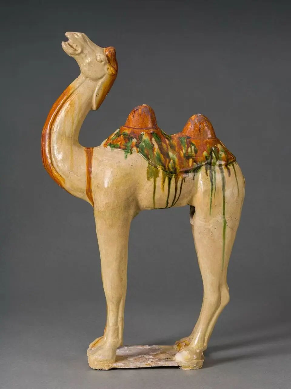 在隋唐大運河文化博物館展廳內,還有一些文物與胡人俑共同展出。例如,滿載行囊的彩繪駱駝俑,再現了絲路商旅的經典場景;高大雄健的三彩駱駝俑,則展現了唐代工藝的高超水平。這些駱駝形象與胡人俑一樣,是絲路繁華在唐代墓葬文化中的反映。