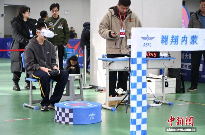 12月14日,內蒙古呼和浩特市,學生參加“無人機第一視角競速賽”。中新社記者 劉文華 攝