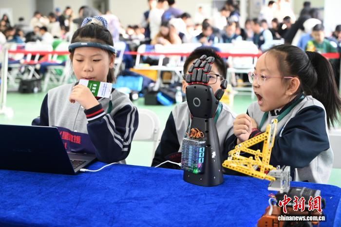 12月14日,內蒙古呼和浩特市,學生參加“腦機星球”比賽。中新社記者 劉文華 攝