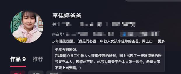 李佳婷的爸爸不得已,在個(gè)人簡(jiǎn)介里寫(xiě)清楚自己的身份,還提醒網(wǎng)友們不要被騙。