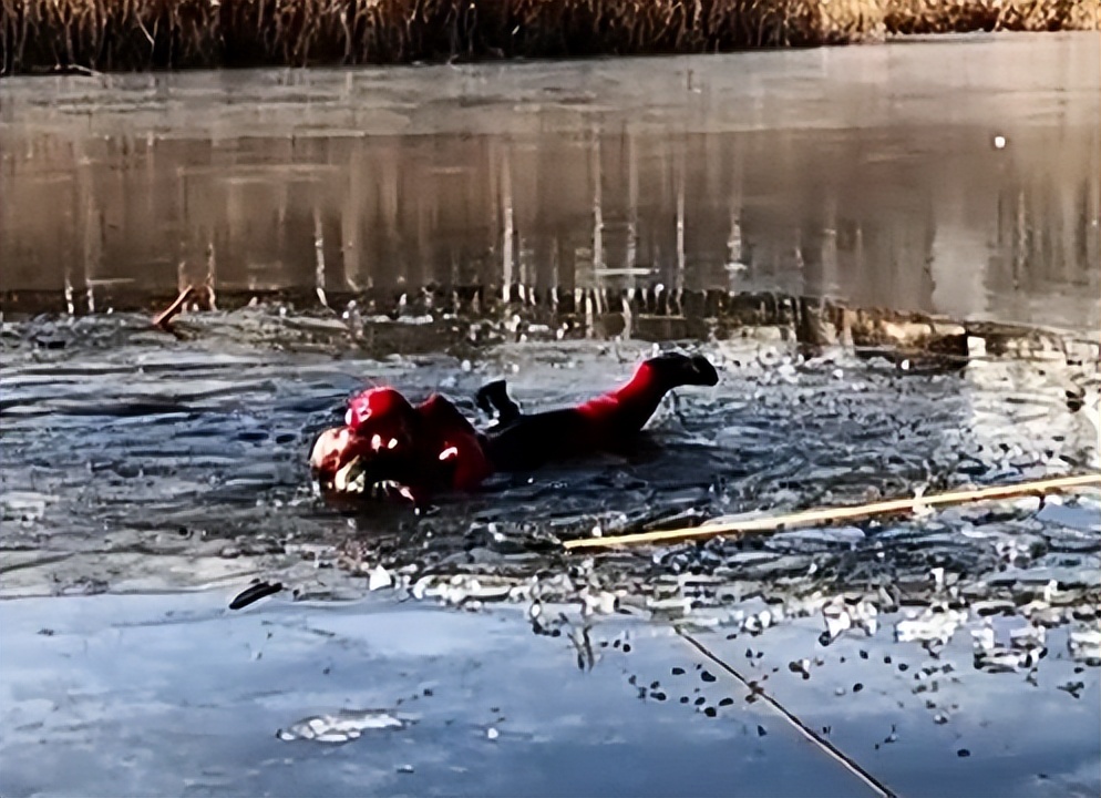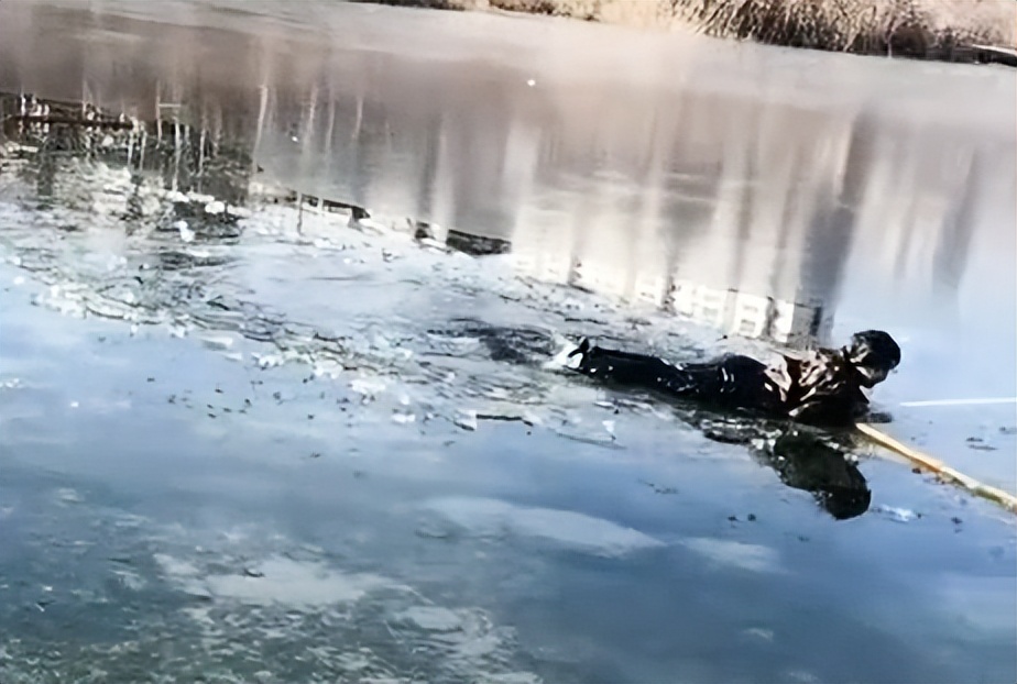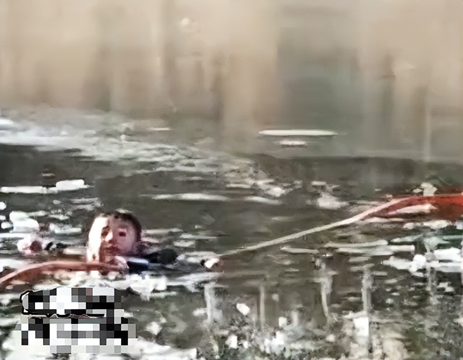 管子剛遞到小男孩手中,身下的冰面突然塌陷,湖水瞬間淹到她的脖子。