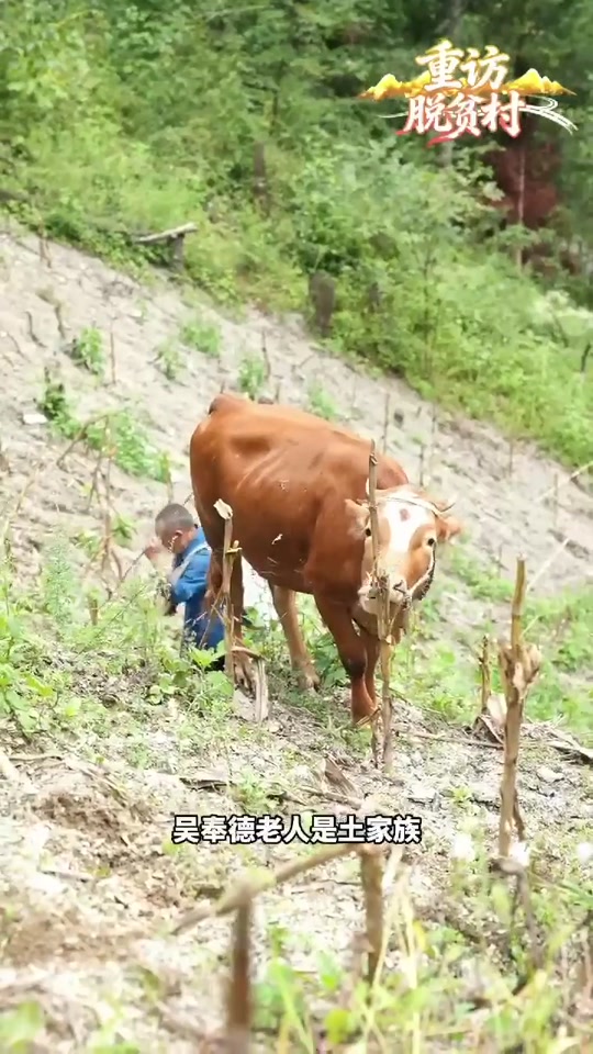 2025年9月下旬,湖北省咸豐縣蘇麻溪村的田埂上草木蔥蘢,蟬聲漸稀。時(shí)隔五年,記者重返這片曾深度貧困的土家族村落。在三頭牛的后面,跟著一個(gè)穿著藍(lán)色粗布衫、背著白色麻袋的老人——74歲的蘇麻溪村村民吳奉德老人站在山上的土路上,滿臉驚喜:“我沒想到,做夢(mèng)都沒想到你會(huì)來!”
