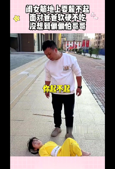 閨女躺地上耍賴不起,面對爸爸軟硬不吃,沒想到偏偏怕哥哥!