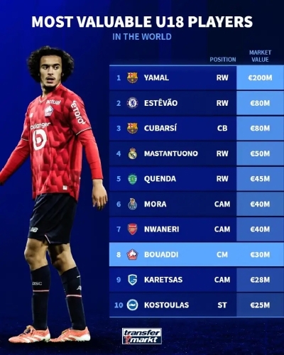 埃斯特旺如今的身價,同齡球員當中已經是僅次于亞馬爾的表現,雖然說和亞馬爾的2億歐元有著巨大差距,但也依然是年輕一代的佼佼者。從數據情況來看,埃斯特旺和效力于巴薩的庫巴西同樣都是8000萬歐元,并列第二的位置,超過了皇馬的馬斯坦諾、葡萄牙體育的昆達以及效力于阿森納的恩內瓦里。不管是天賦還是競爭力,在同齡人當中,埃斯特旺都是最值得期待的球員。