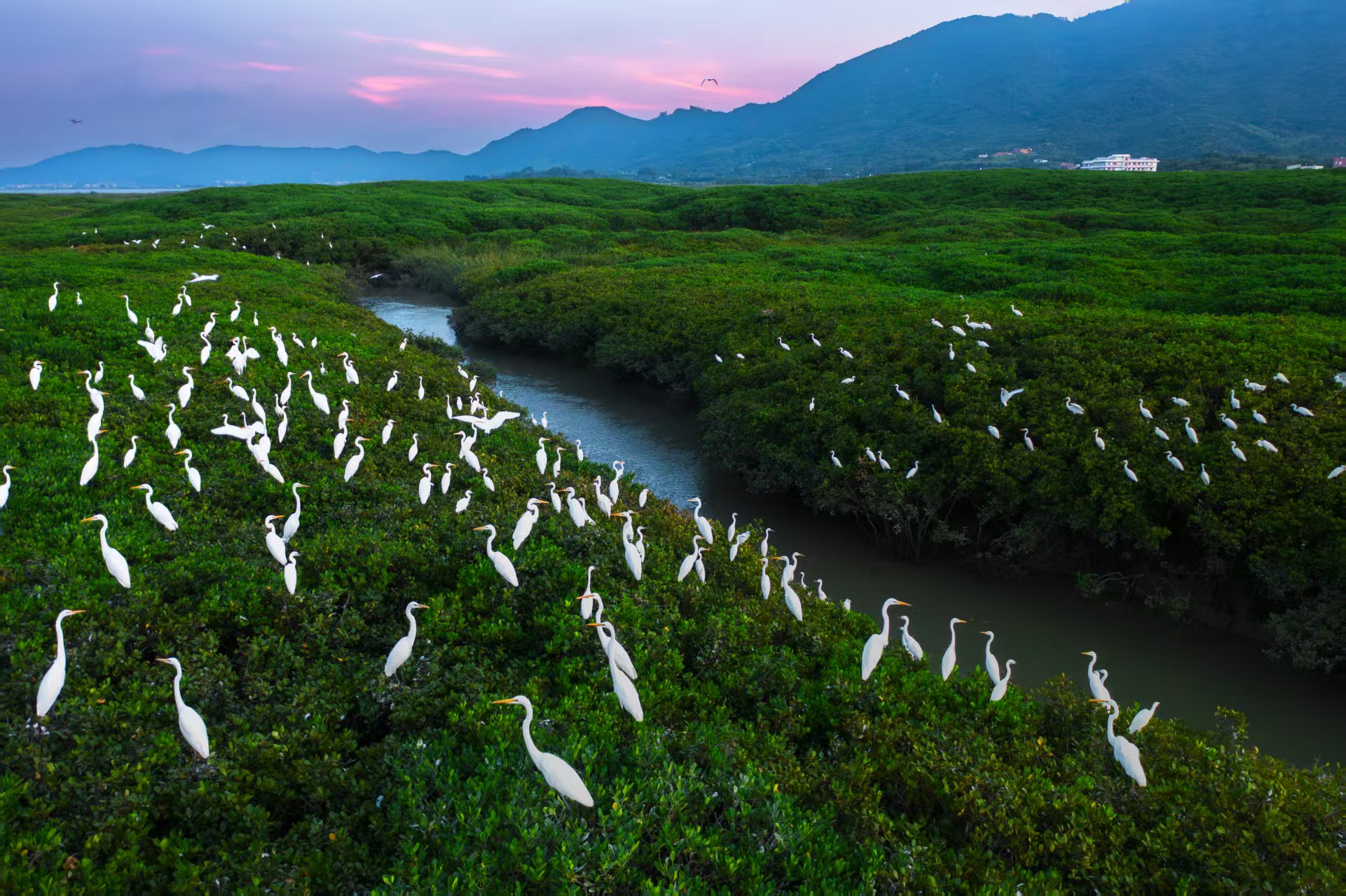 如今,這片曾經退縮的森林正在重生,面積逐年增加,珍稀鳥類頻繁到訪,中華白海豚成為常客。而更重要的是,一種新的平衡正在建立——人與自然之間,開發與保護之間,當下與未來之間的平衡。潮汐來去,紅樹林靜立。它見過千年的滄海桑田,卻依然在每個清晨,用新生的綠芽問候世界,訴說著自然界的堅韌與詩意。