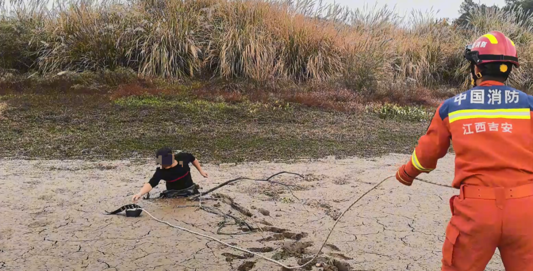 男子下半身被淤泥“吞噬”。圖源:江西吉安消防
