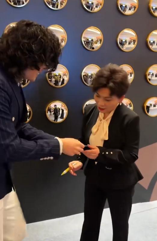 這名網(wǎng)友在現(xiàn)場碰到了鄧亞萍,還幸運(yùn)地拿到了鄧亞萍的簽名。鄧亞萍當(dāng)晚穿著黑色西裝,看上去特別干練,氣場很足。