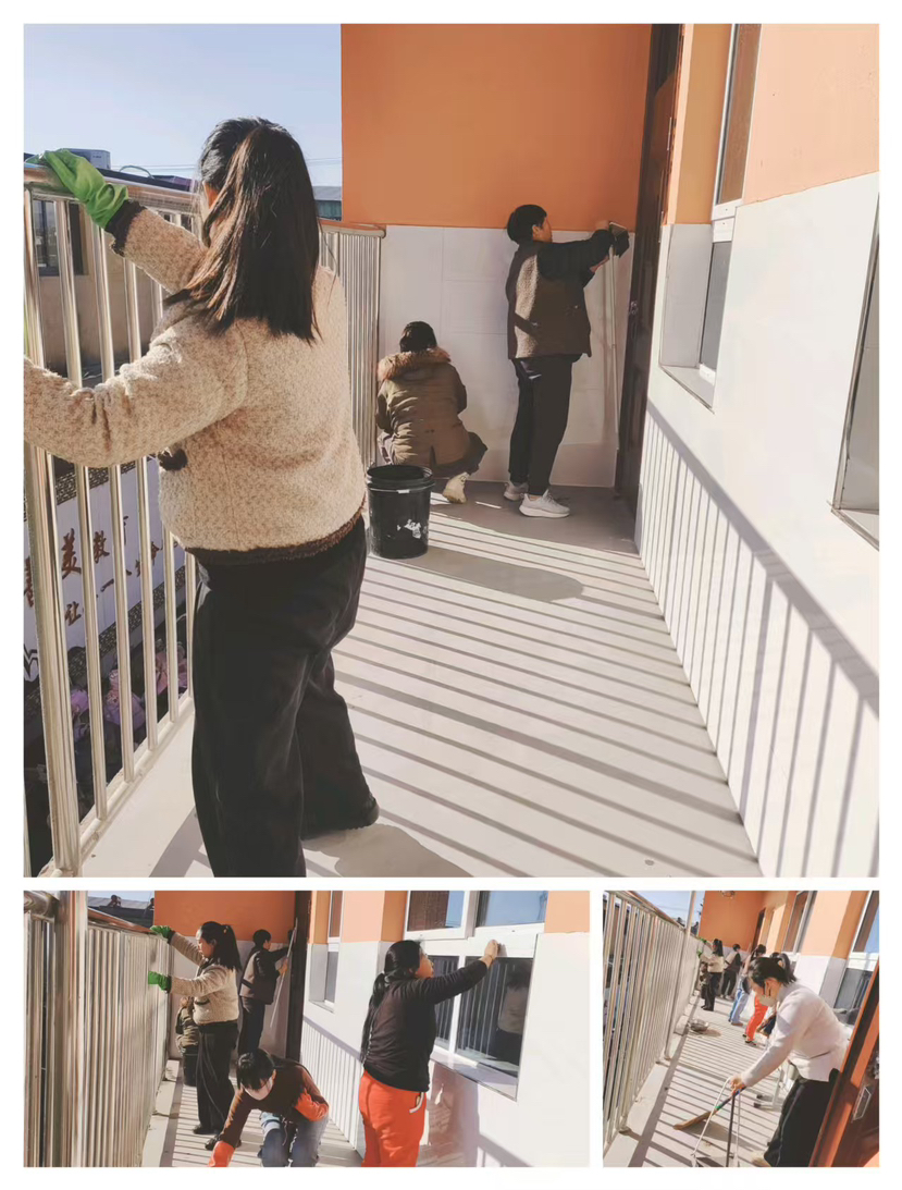 家長們自帶工具,踴躍參與,教室清潔、校園內(nèi)外積雪清理、學(xué)生桌凳擦洗……處處是忙碌的身影。老師們則分工協(xié)作,協(xié)助安裝窗簾、檢修照明。眾人齊心協(xié)力,揮灑汗水,昔日校園迅速煥然一新。