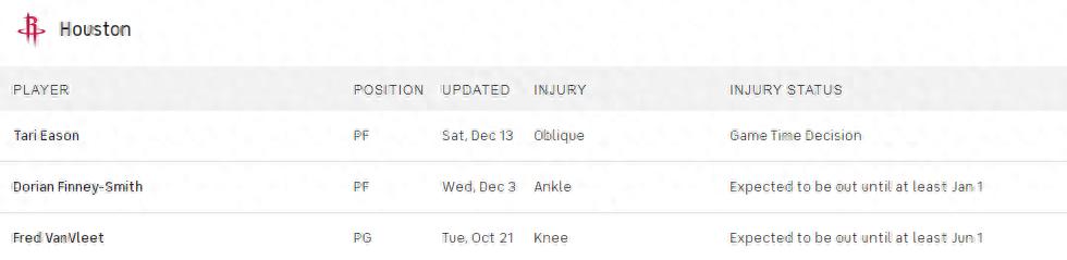 美國媒體《CBS體育》更新了火箭的傷病名單,目前有三名球員還在其中,他們分別是范喬丹、芬尼-史密斯和伊森。