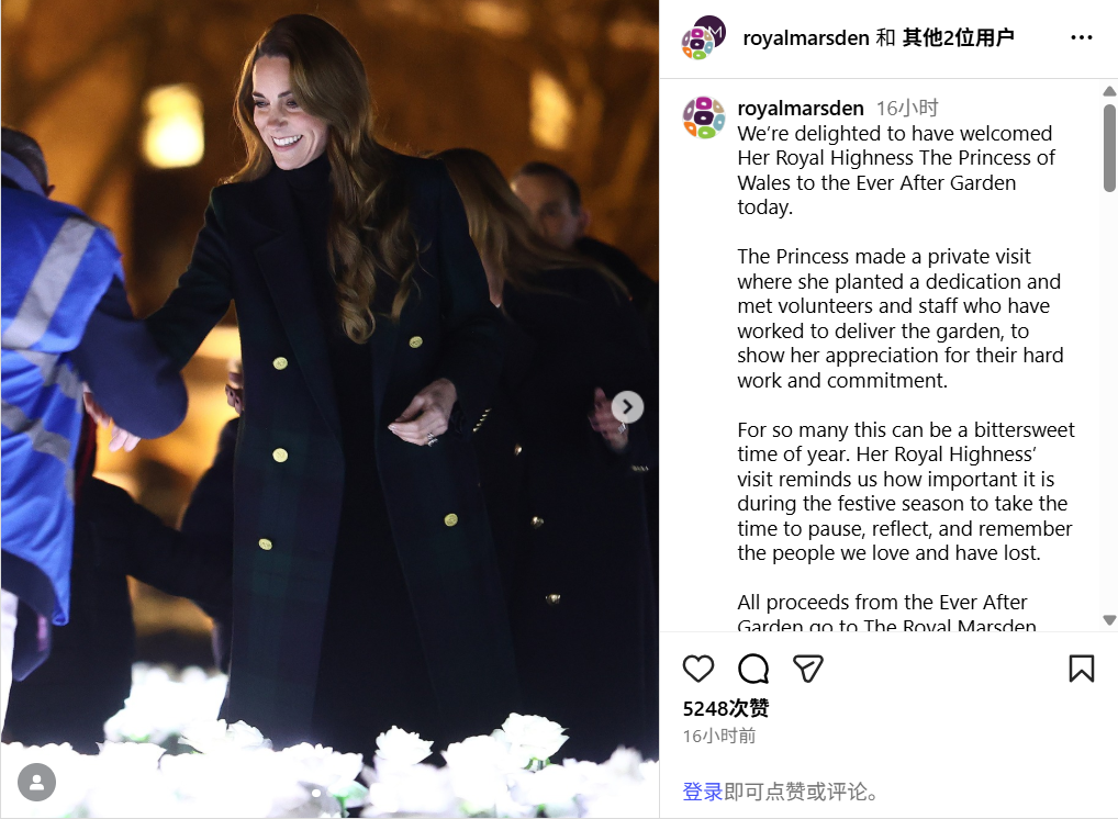 凱特王妃選擇在節日期間訪問“永恒之后花園”也具有特殊意義。