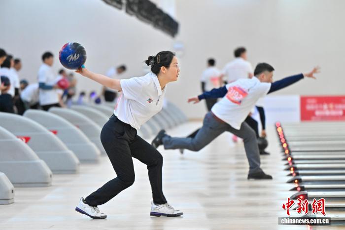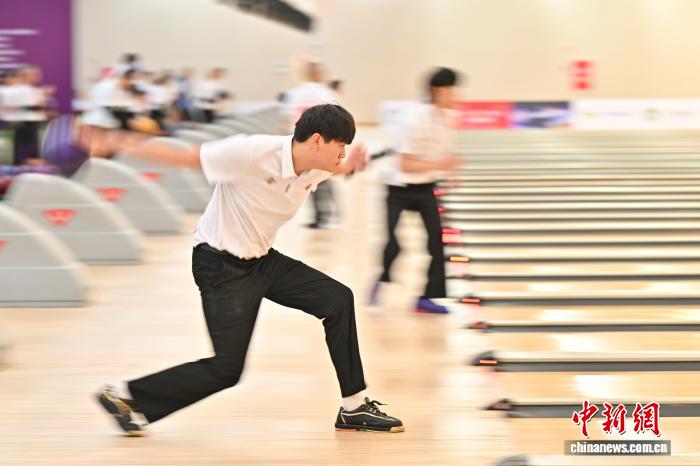 12月14日,2025中國保齡球巡回賽總決賽在廣州天河體育中心收官。本次賽事由國家體育總局小球運動管理中心、中國保齡球協會及廣州市體育總會聯合主辦,共吸引來自全國各地的168名選手齊聚賽場,以球會友。圖為比賽現場。中新社記者 陳驥旻 攝