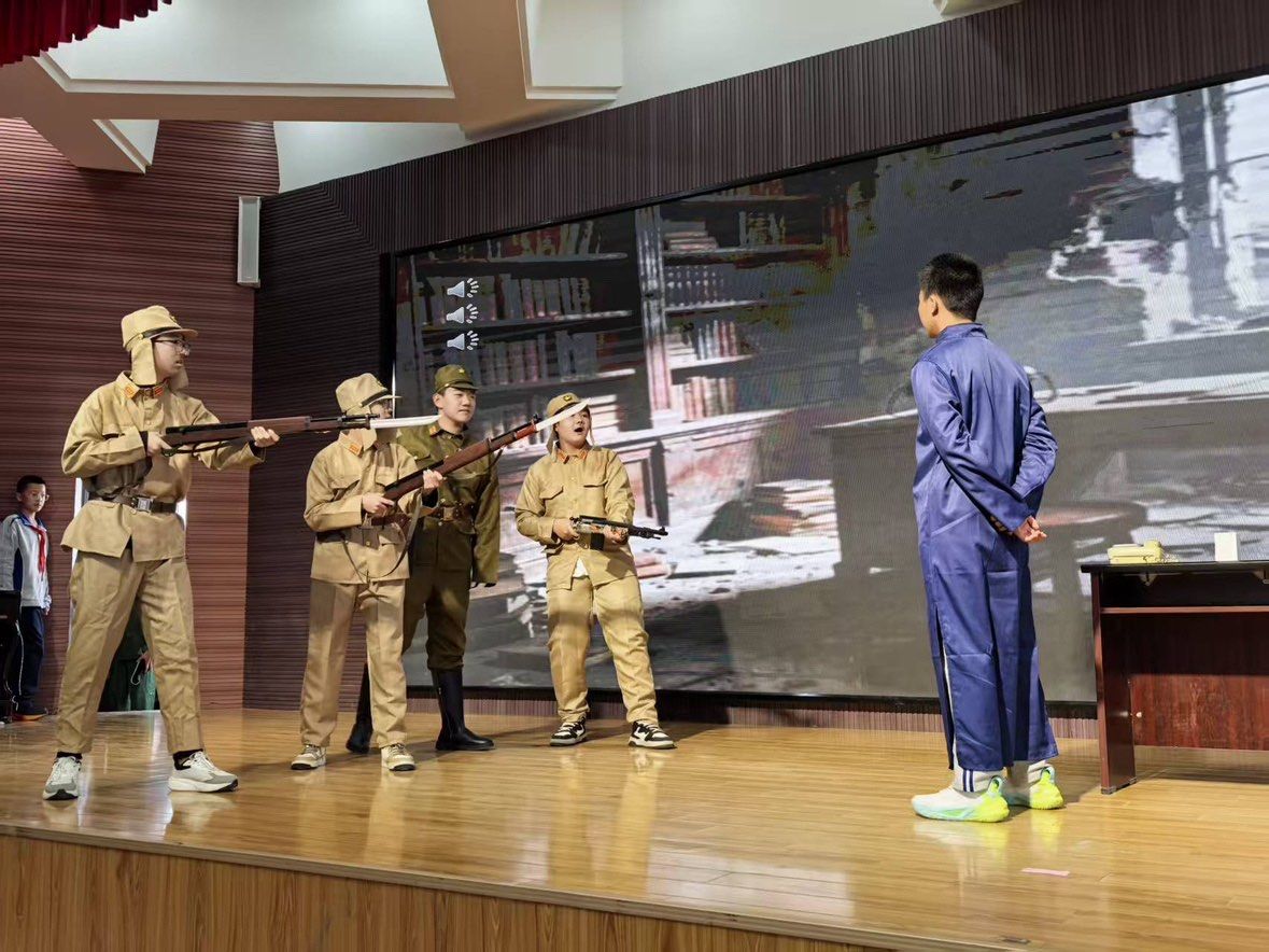 我坐在觀眾席的后排,舉著手機(jī)的手微微發(fā)顫。旁邊朵朵的媽媽輕輕碰了碰我:“你家孩子演得真投入,眼神太到位了!”我笑著點(diǎn)頭,眼眶卻有些發(fā)熱。平日里在家撒嬌要糖的小姑娘,此刻腰板挺得筆直,眉眼間是五妹的剛烈與果敢。當(dāng)她喊出“不讓他們骯臟的子彈奪走我們的性命”時(shí),臺(tái)下響起細(xì)碎的抽氣聲,我看見她的小拳頭攥得緊緊的,指甲幾乎嵌進(jìn)掌心。忽然想起課本里的八女投江,原來英雄的故事,竟能通過孩子的聲音,撞得人心頭發(fā)燙——那些遙遠(yuǎn)的犧牲,此刻正借著女兒的眼眸,在我眼前變得鮮活而滾燙。