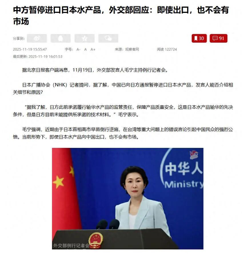 11月19日,一則重磅消息在國際貿(mào)易圈子炸開了鍋:中方正式通報,暫停進(jìn)口日本水產(chǎn)品。