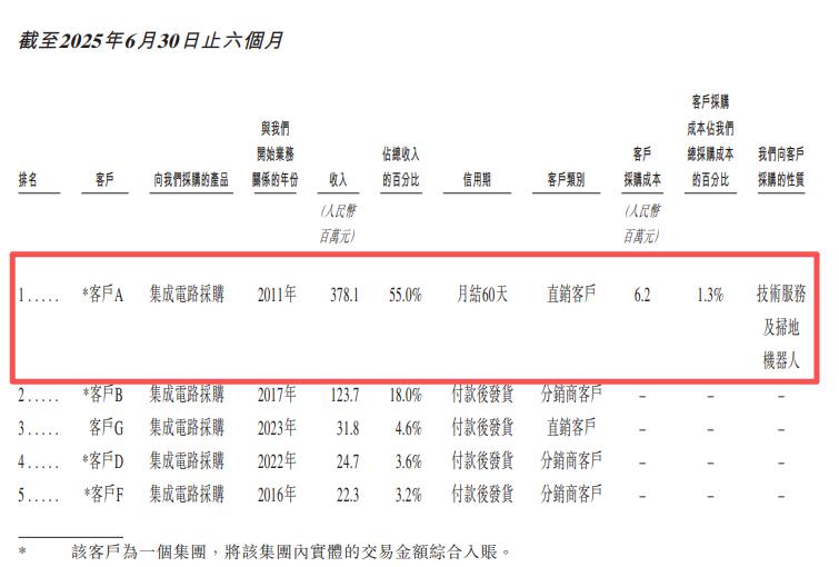 富瀚微的客戶集中度之高令人咋舌。2025年上半年,公司前五大客戶銷售占比竟高達84.4%,其中單一最大客戶更是貢獻了55.0%的銷售收入。