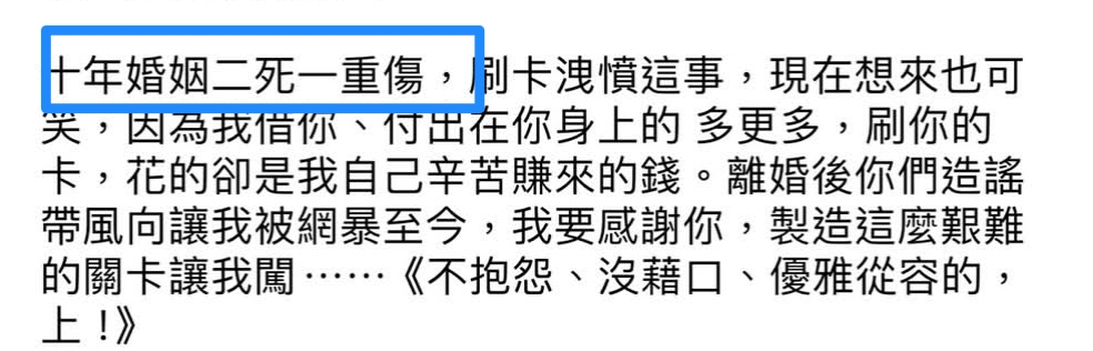 再后來大S離婚與汪小菲決裂,發長文寫到:十年婚姻兩死一重傷。