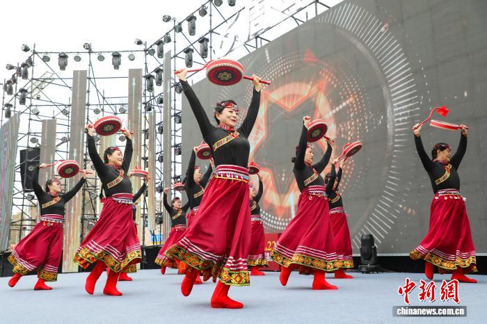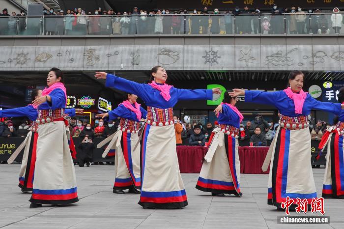 圖為藏族熱巴鼓舞表演現(xiàn)場。中新社記者 馬銘言 攝