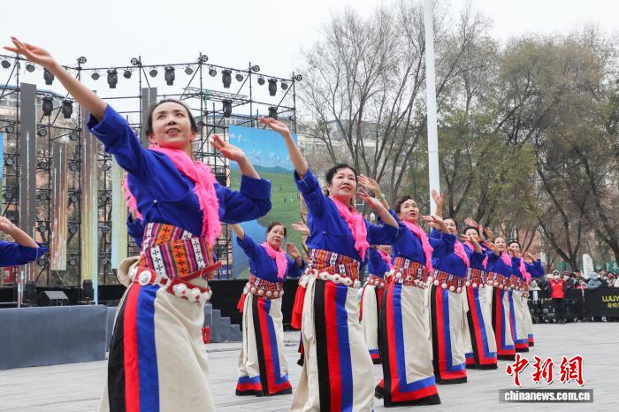 圖為健身愛好者表演藏舞。中新社記者 馬銘言 攝