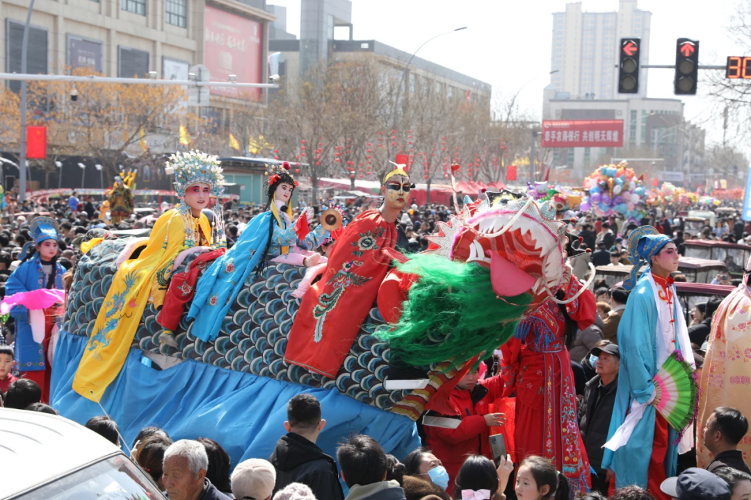 若逢節慶,滑縣的煙火氣更為濃烈。滑縣道口傳統古會距今已有七百多年的歷史,每年農歷正月末,道口鎮都會舉辦盛大的古廟會,通過一系列豐富多彩的傳統表演——踩高蹺、跑旱船、背閣、抬閣、扭秧歌、武術等,鑼鼓喧天,熱鬧非凡。滑縣人敬畏歷史、熱愛當下、歌頌生活的寫照,由此可見一斑。