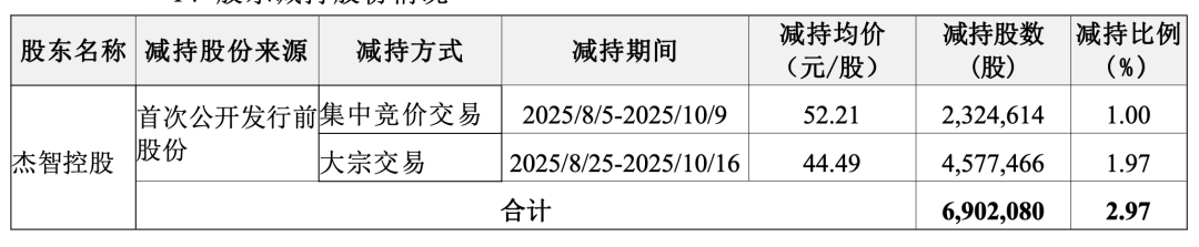 今年7月,富瀚微公告,杰智控股計(jì)劃三個(gè)月內(nèi)通過(guò)集中競(jìng)價(jià)或大宗交易方式減持不超過(guò)約690萬(wàn)股,原因在于“基金到期退出安排”。10月17日,杰智控股通過(guò)競(jìng)價(jià)交易和大宗交易完成減持計(jì)劃,累計(jì)變現(xiàn)約3.25億元。減持完成后,持股比例降至1.91%。
