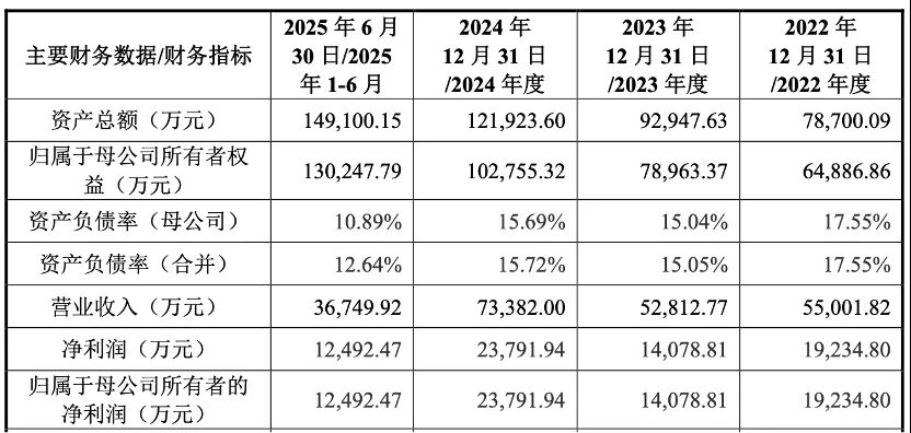 2022年-2025年上半年,嘉德利實現營業收入分別為5.50億元、5.28億元、7.34億元和3.67億元,其中2023年和2024年同比增速分別為-3.98%和38.95%;同期歸母凈利潤分別為1.92億元、1.41億元、2.38億元和1.25億元,其中2023年和2024年同比增速分別為-26.81%和68.99%,經營業績存在一定波動。
