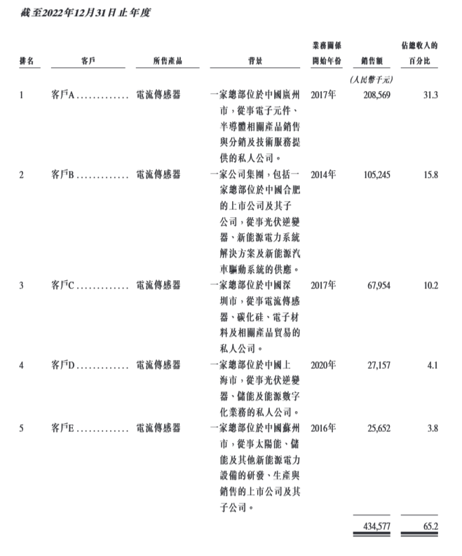 各期,希磁科技來自前五大客戶的收入分別占總收入的65.2%、62.4%、62.5%及58%,來自最大客戶的收入分別占有關期間總收入的31.3%、24.6%、20.9%及17.8%。