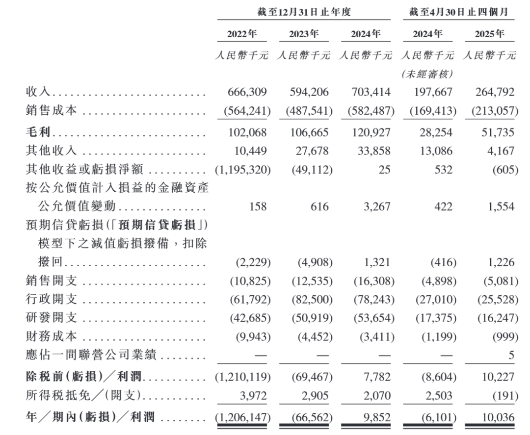 2024年,在公司銷售成本同比增長了19.47%的情況下,希磁科技扭虧轉盈,實現凈利潤985.2萬元,收入也同比增長18.38%至7.03億元。2025年1-4月,希磁科技的收入同比增長33.96%至2.65億元,凈利潤為1003.6萬元,比2024年一年還多。