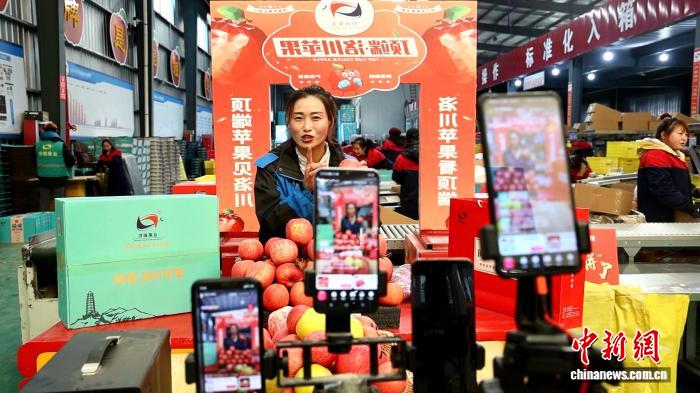 銷售人員在網絡平臺推薦產自延安洛川的蘋果。 李進 攝