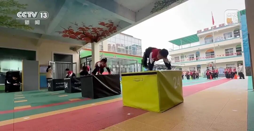 當(dāng)時(shí),沒有現(xiàn)成的教材和模式,幼兒園就想辦法從籃球、跳繩、跑酷、體操中找靈感。小班和中班的孩子,通過兔子跳、猴爬等游戲,培養(yǎng)身體的靈活性;大班則更注重力量和速度的提升。