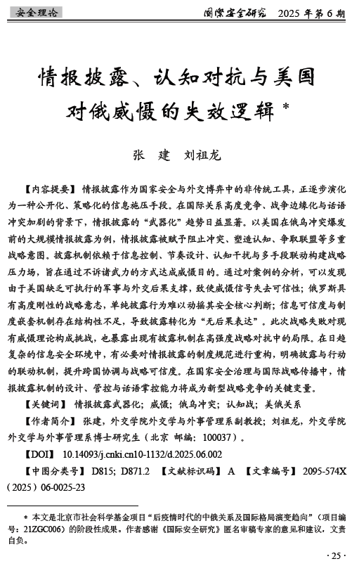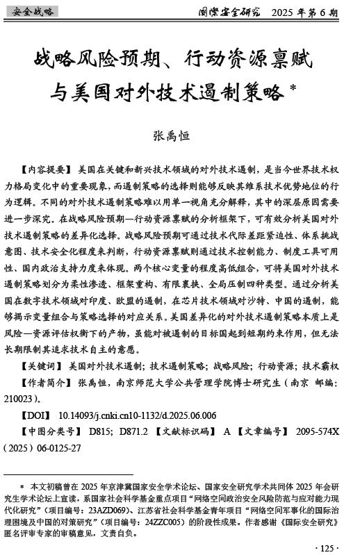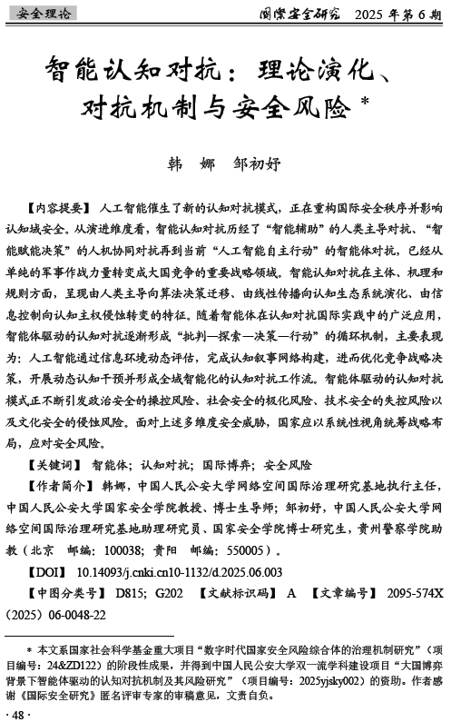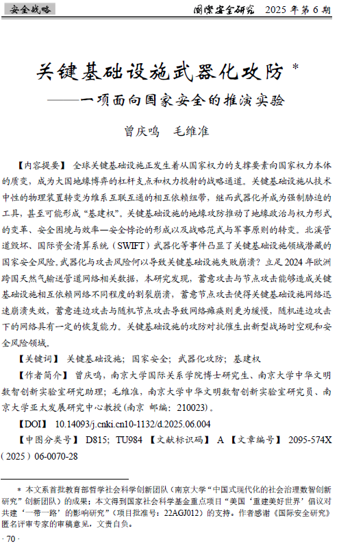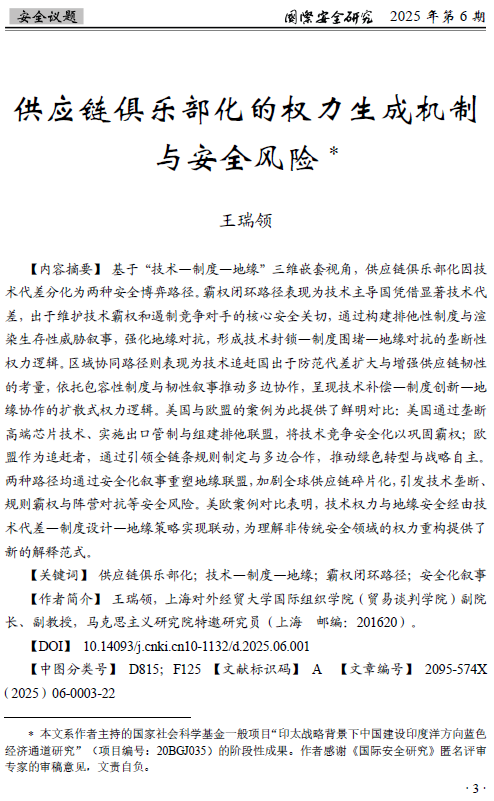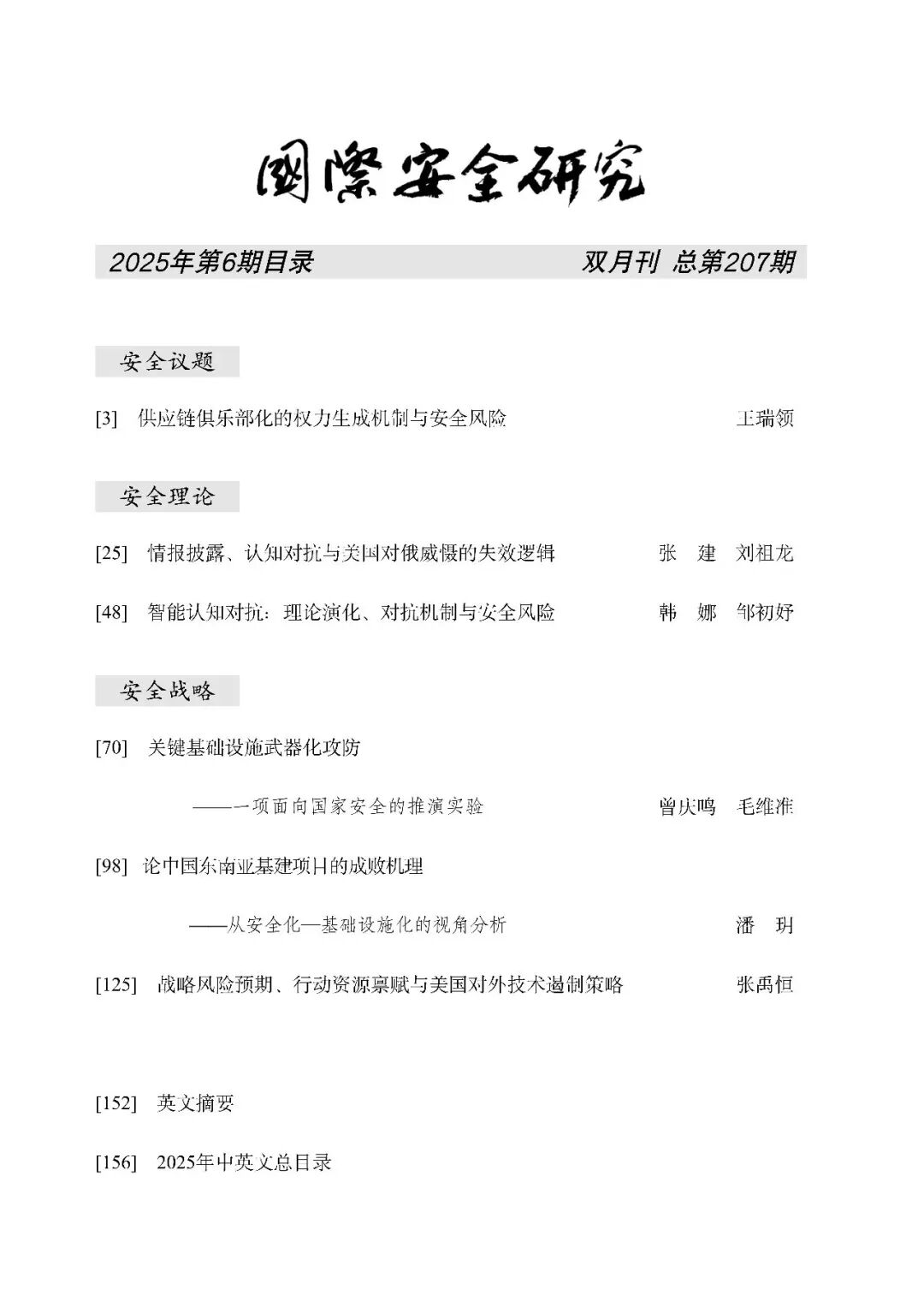 本文源于《國際安全研究》2025年第6期總覽,本文為公益分享,服務于科研教學,不代表本平臺觀點。如有疏漏,歡迎指正。