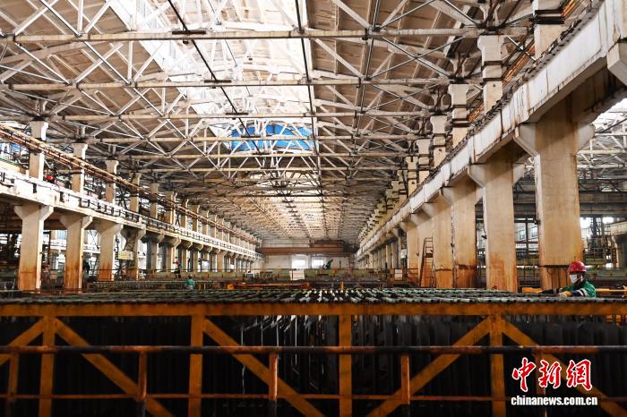 圖為金川集團鎳冶煉廠鎳電解一車間內。(資料圖)李亞龍 攝