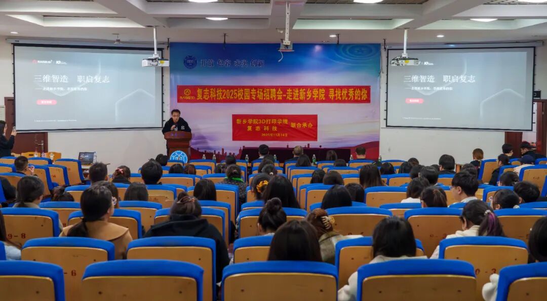 11月14日下午,3D打印學院攜手上海復志信息科技股份有限公司在A05一樓報告廳,開展了一場特別的校園專場招聘會。本次招聘采用“CEO帶著校友來招聘”的方式,生動地向2026屆畢業生們傳遞了公司的企業文化和工作氛圍,為在校學子搭建了業內領先的3D打印民企深度對話的橋梁。