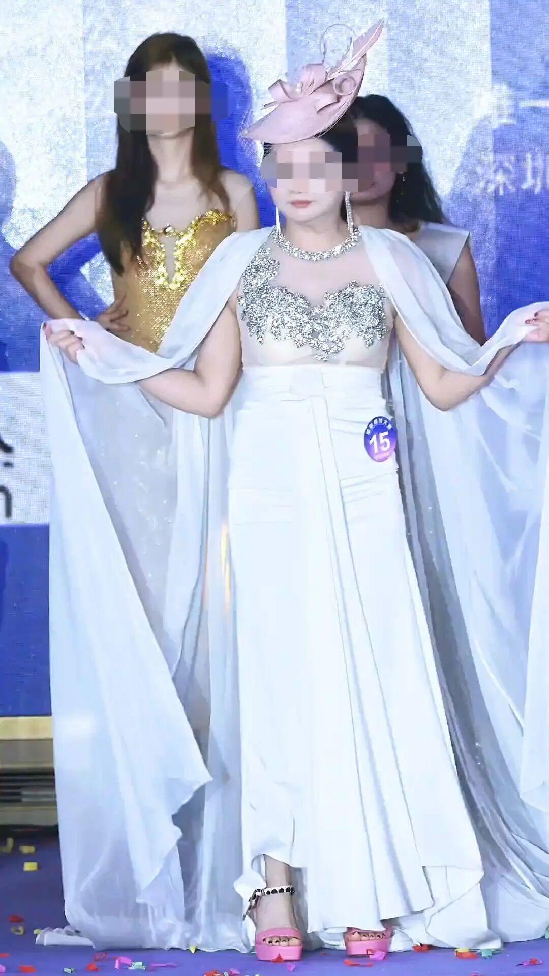 網(wǎng)絡(luò)流傳的相關(guān)視頻顯示,15號(hào)女選手是一位看起來(lái)年齡偏大的女士,頭戴桂冠、身披冠軍綬帶、手拿冠軍證書(shū),在強(qiáng)光下獨(dú)自走上T臺(tái),向觀眾與評(píng)委致謝。她的體態(tài)豐腴,步伐略顯拘謹(jǐn),但臉上寫(xiě)滿了自信和驕傲。(此前報(bào)道: