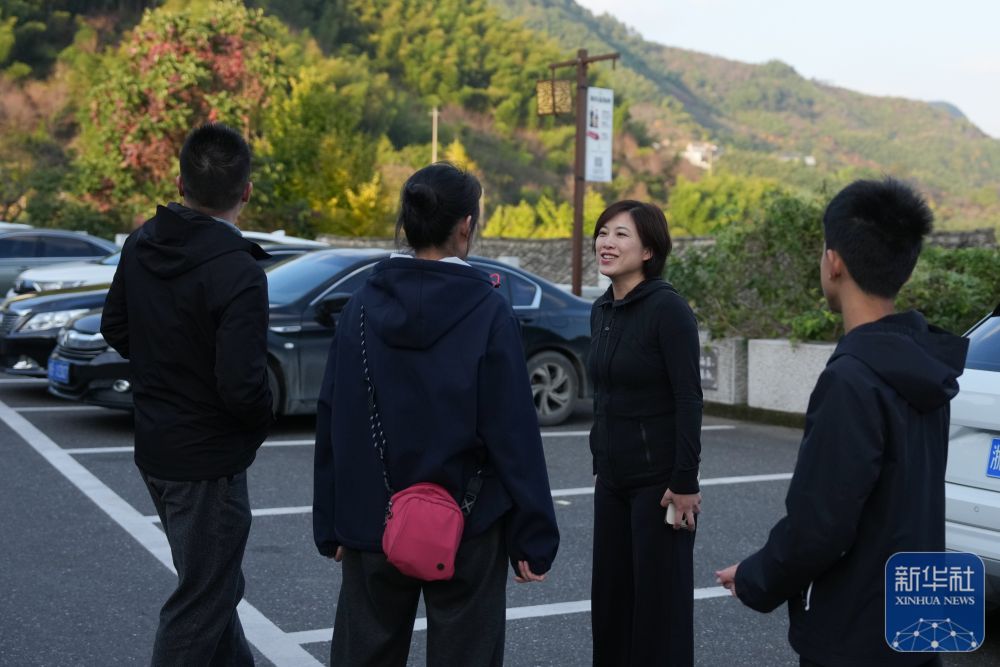 11月13日,東山村民宿主董鳳潔(右二)與游客聊天。2024年5月,董鳳潔打造的“東山祿房”民宿正式營業。她堅持拍攝短視頻,推介村里的美景、美食。新華社記者 黃宗治 攝