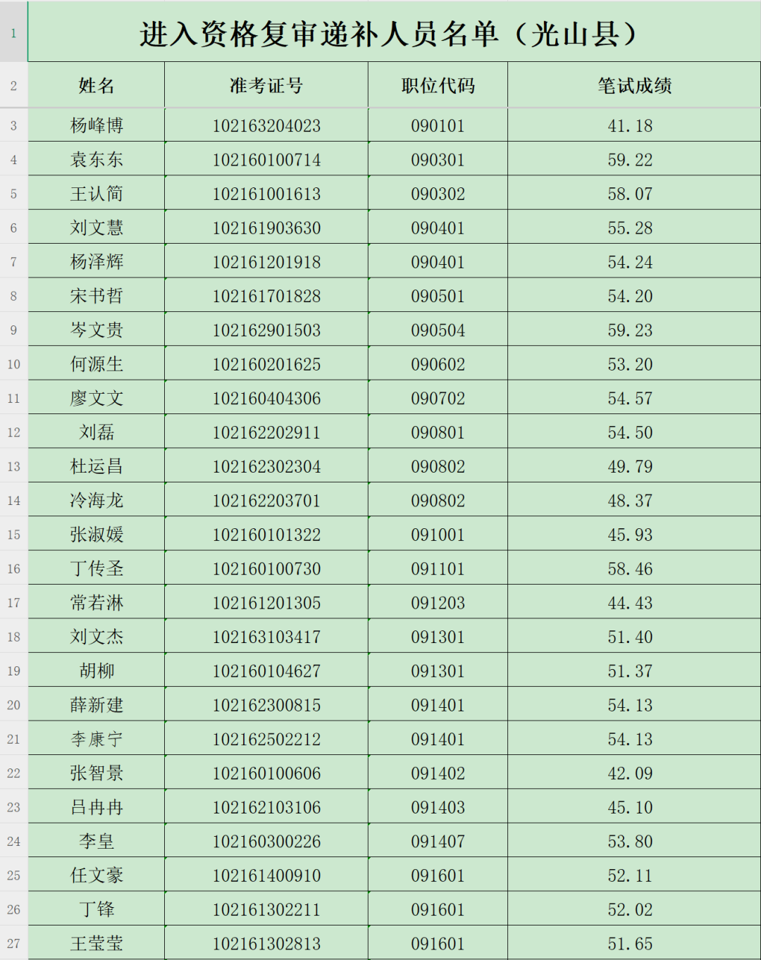 2025年信陽市事業單位公開招聘聯考工作已進入面試資格復審階段。由于出現考生自動放棄和資格復審不合格等原因,根據《2025年信陽市事業單位公開招聘聯考工作的公告》和《2025年光山縣參加信陽市事業單位公開招聘聯考資格復審及面試公告》的規定,現將面試資格復審遞補的有關事宜公告如下: