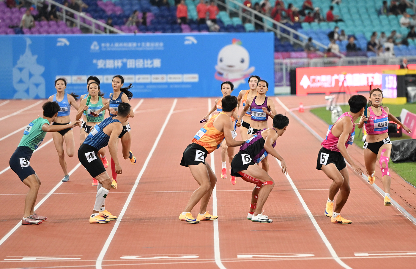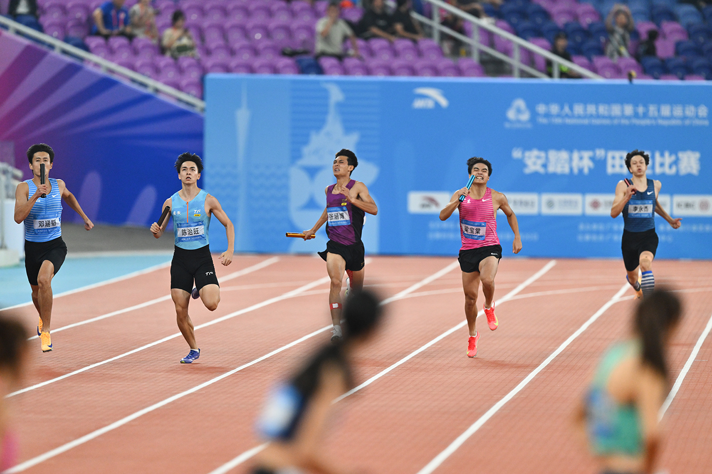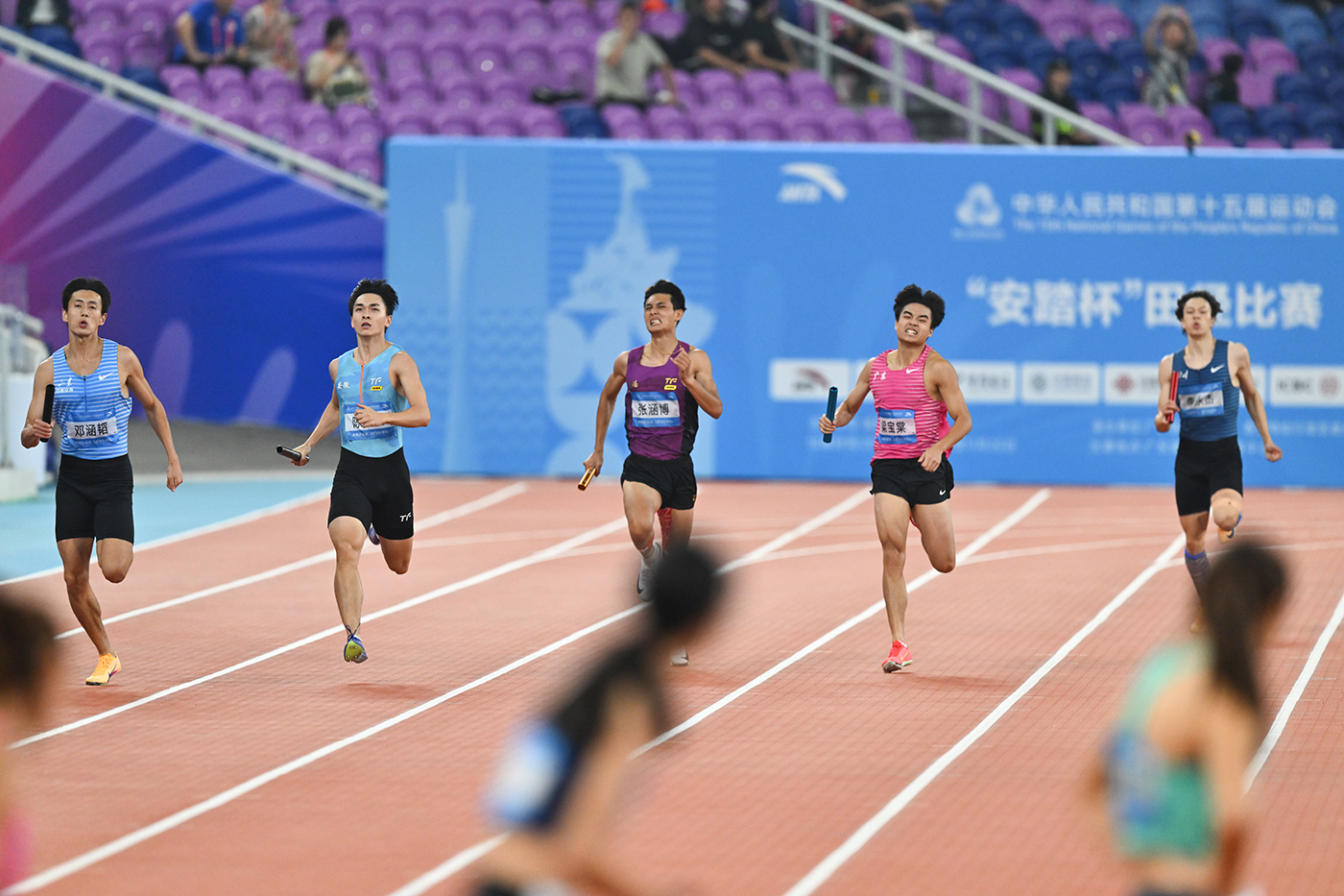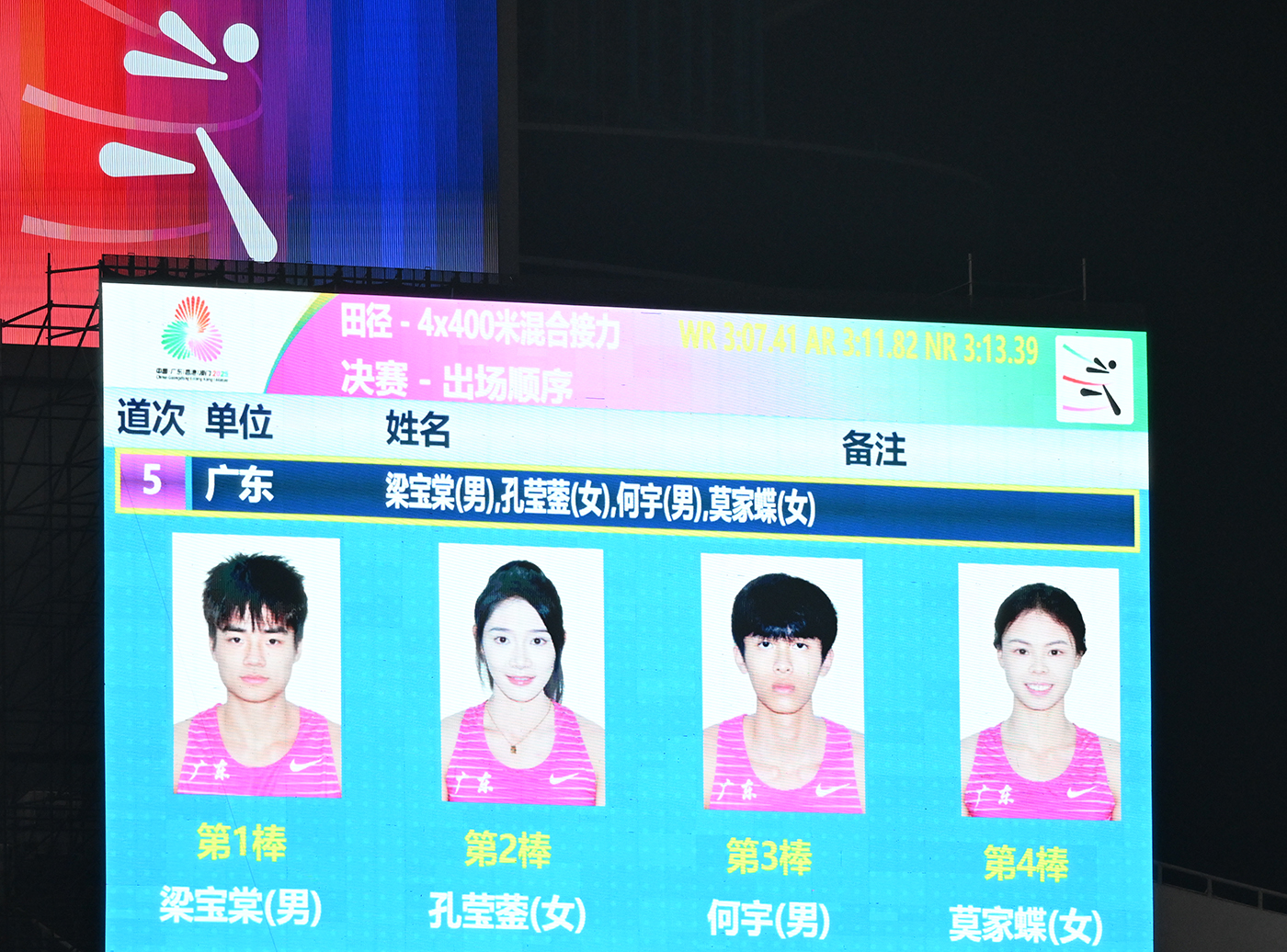 11月15日晚,第十五屆全運會田徑比賽4X400米混合接力決賽在廣東奧體中心舉行,廣東隊獲得冠軍,亞軍季軍分別被四川隊和河北隊獲得。